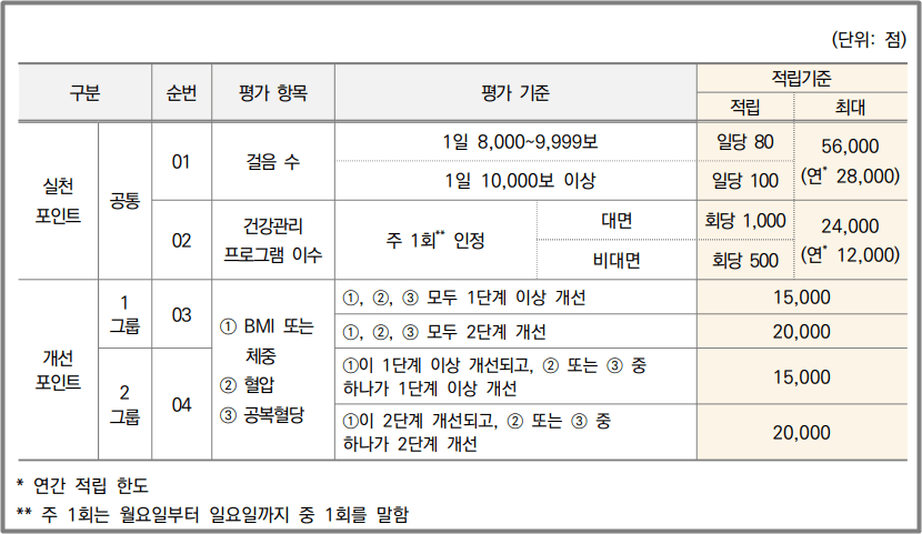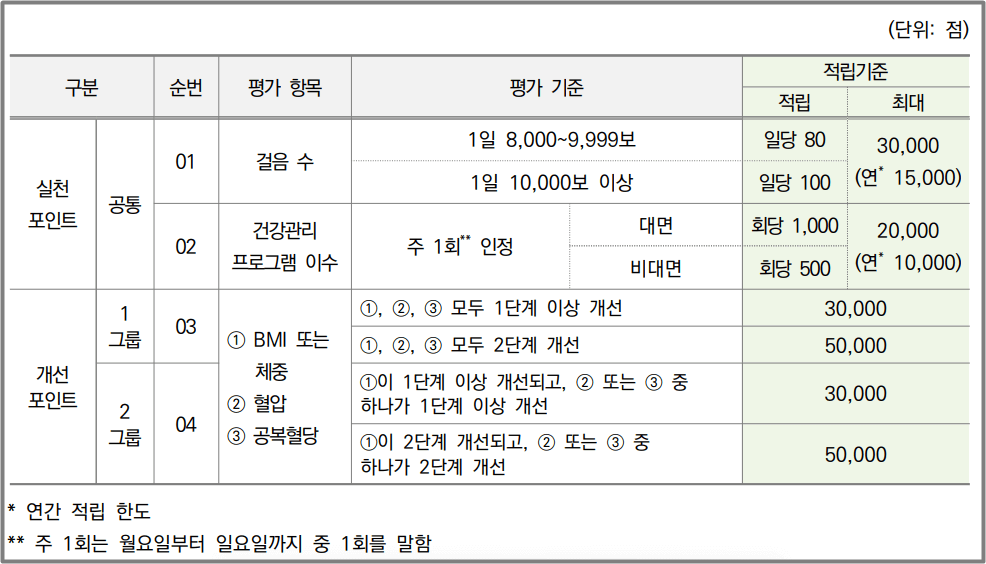 - (고혈압) 실천포인트 연간 최대 2만점, 개선포인트 연간 최대 3만점 적립
